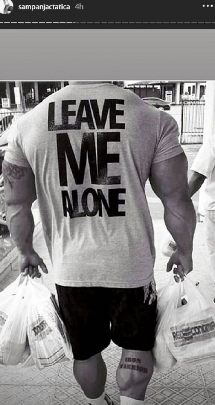Foto: printscreen/instagram.com/sampanjactatica- Ostavi me na miru- piše na majici nabildovanog momka čiju je sliku objavio Radanović.