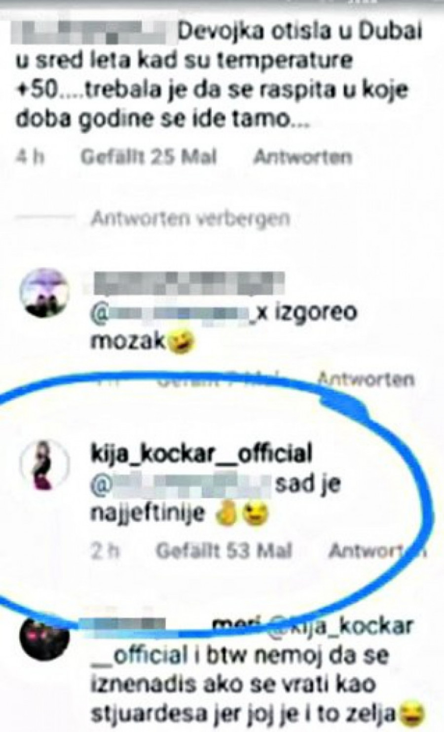 - Devojka otišla u Dubai usred leta, kada su temperature i plus 50 stepeni. Trebalo je da se raspita u koje doba godine se ide tamo - glasio je jedan od komentara Luninih antifanova, na šta je Kockareva odgovorila: