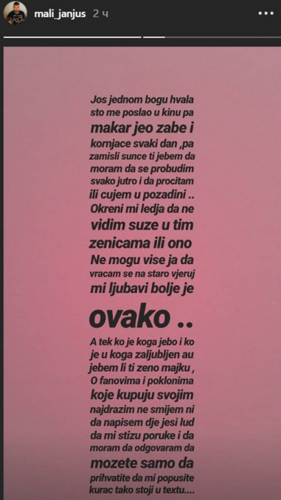 Janjus legendo pa sam sebe demantujes..eto morao si da pises o kiji da ni dobio naslov u novinama..haha koji si ti car ne verujem..bas te nerviraju ti pevaci i te pesme a vidimo znas reci znas..haha