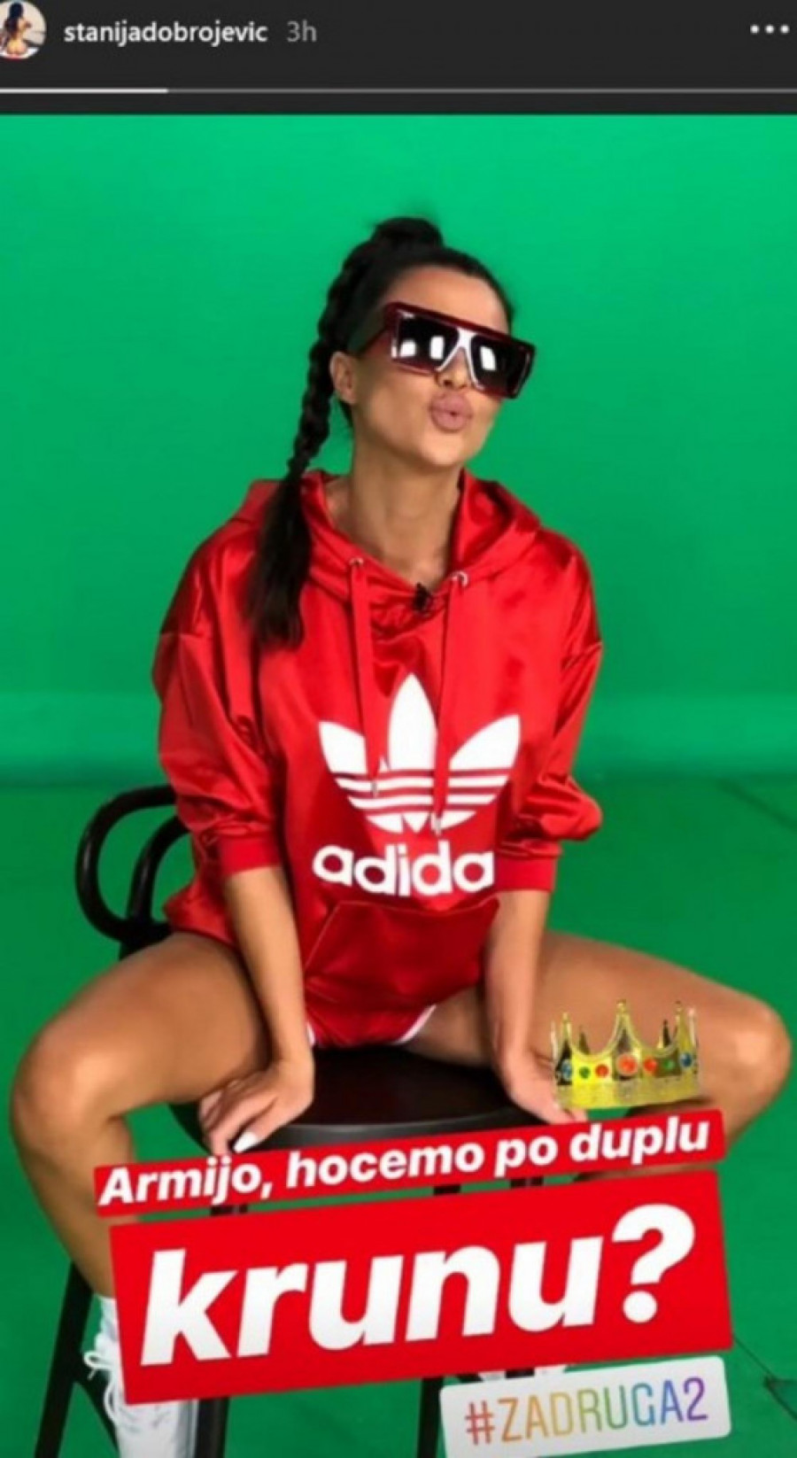 - Armijo, hoćemo po duplu krunu? - upitala je Dobrojevićeva fanove koja očigledno traži odobrenje svojih pratilaca na društvenoj mreži Instagram kako bi postala stanovnica imperije u Šimanovcima.