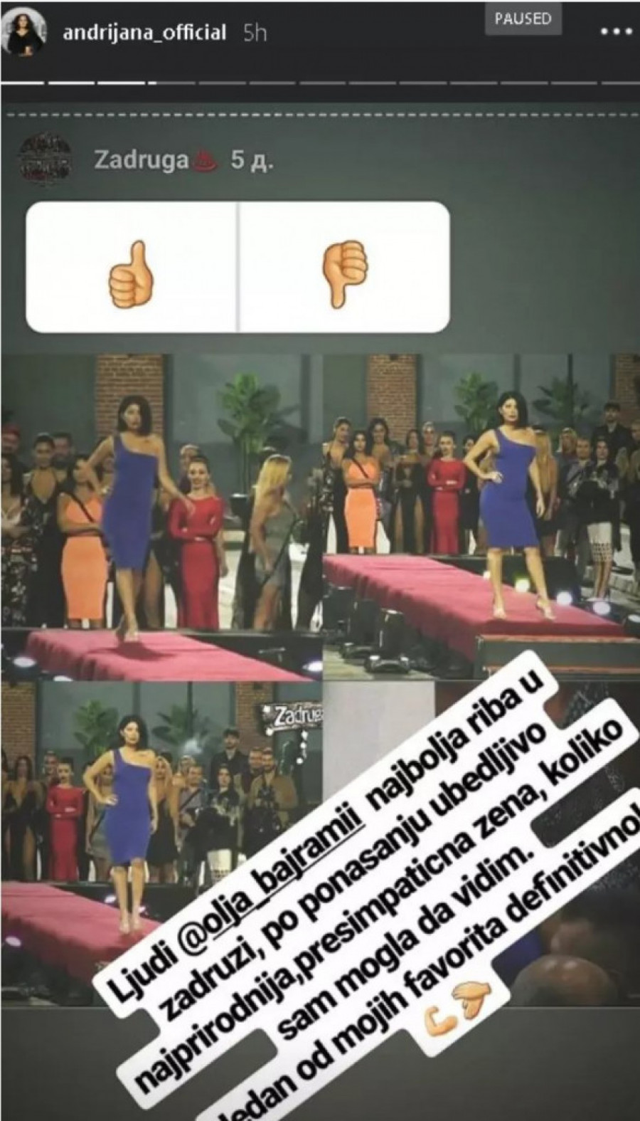 Foto: printscreen/instagram.com/andrijana_official- Ljudi, Olja Bajrami je najbolja riba u "Zadruzi", po ponašanju ubedljivo najprirodnija, presimpatična žena, koliko sam mogla da vidim. Jedan od mojih favorita definitivno - napisala je Andrijana uz fotografije Olje Bajrami.