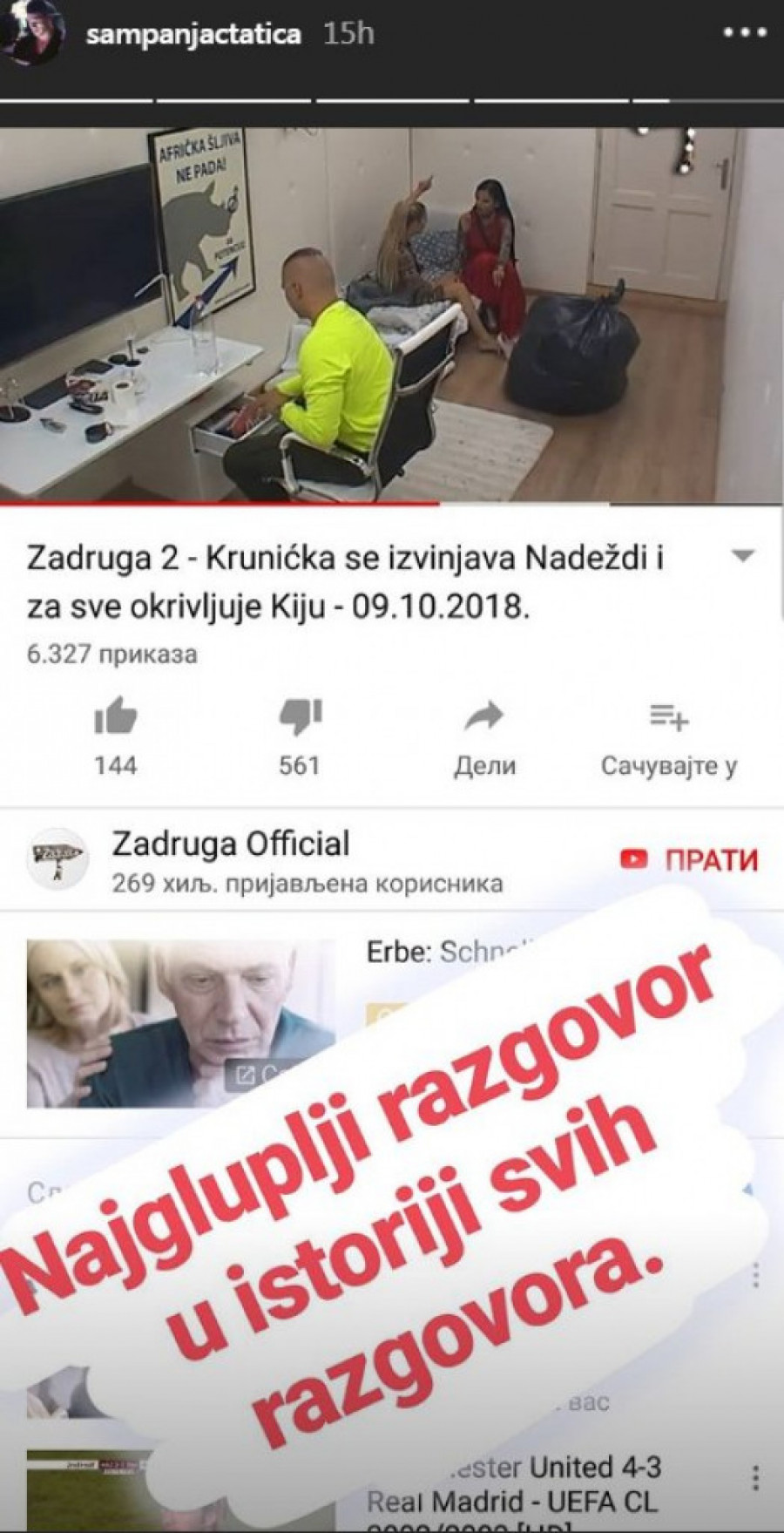Foto: printscreen/instagram.com/sampanjactatica- Najgluplji razgovor u istoriji svih razgovora - kratko je prokomentarisao pevač.