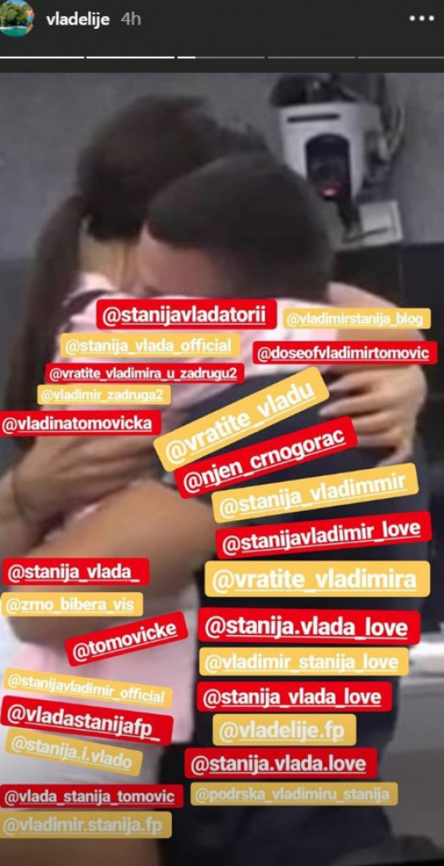 Bivši učesnik "Zadruge" Vladimir Tomović objavio je sliku u strasnom zagrljaju sa Stanijom Dobrojević.