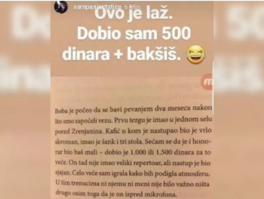- Ovo je laž! Dobio sam 500 dinara plus bakšiš. Sve kul - napisao je Sloba na svom Instagramu, dok se Kija nije oglašavala povodom tih navoda.