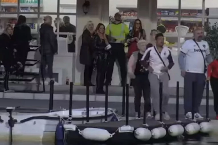 Međutim, Miki Đuričić ju je uhvatio kako bi sprečio da se dodatno potrese, pa možda čak i ona upadne u vodu.