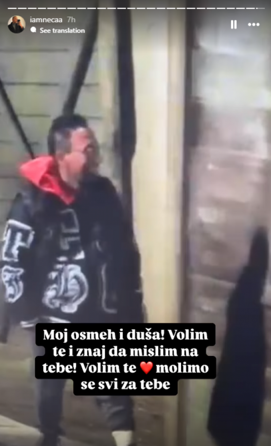- Moj osmeh i duša. Volim te i znaj da mislim na tebe! Volim te! Molimo se svi za tebe - poručio je Lazić.