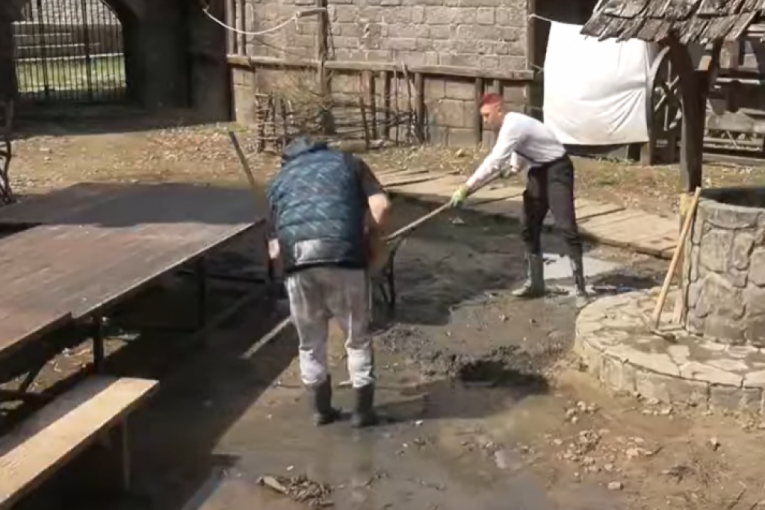 U dvorištu, fokus im je bio na delu oko bunara, gde su se nakupili blato i voda. Ovi uslovi su mogli predstavljati pravi izazov, ali Boža i Kristijan nisu dopustili da ih to obeshrabri. Obuli su čizme i uzeli lopate, spremni da se uhvate u koštac sa najprljavijim poslom. Njihova posvećenost i trud su očigledni, a svakako su i inspirativni. Rad na otvorenom, bez obzira na vremenske uslove, može biti iscrpljujuć, ali i vrlo zadovoljavajuć, što se i moglo zaključiti na njihovim licima.