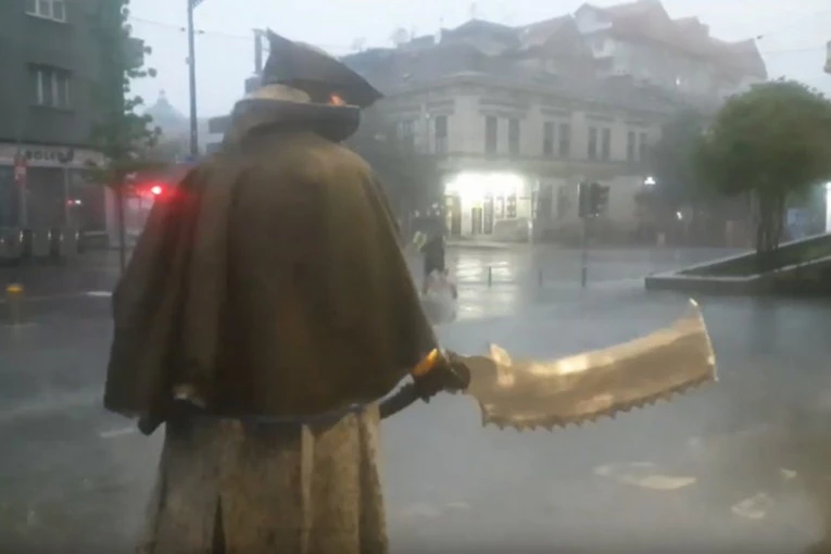 Nevreme koje je juče zadesilo celu Srbiju i Balkan nije omelo dvojicu maskiranih momaka da se dobro zezeju na kiši.