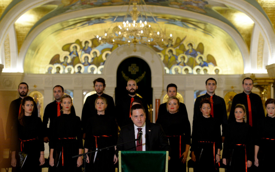 Otvaranje koncerta "Veče srpske i evergrin muzike - Srbija u Evropi" u Kripti Hrama Svetog Save u Beogradu.
