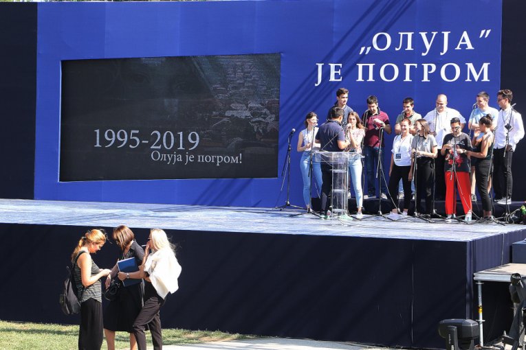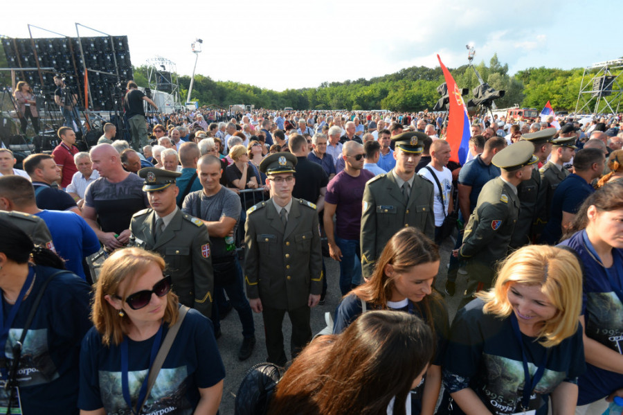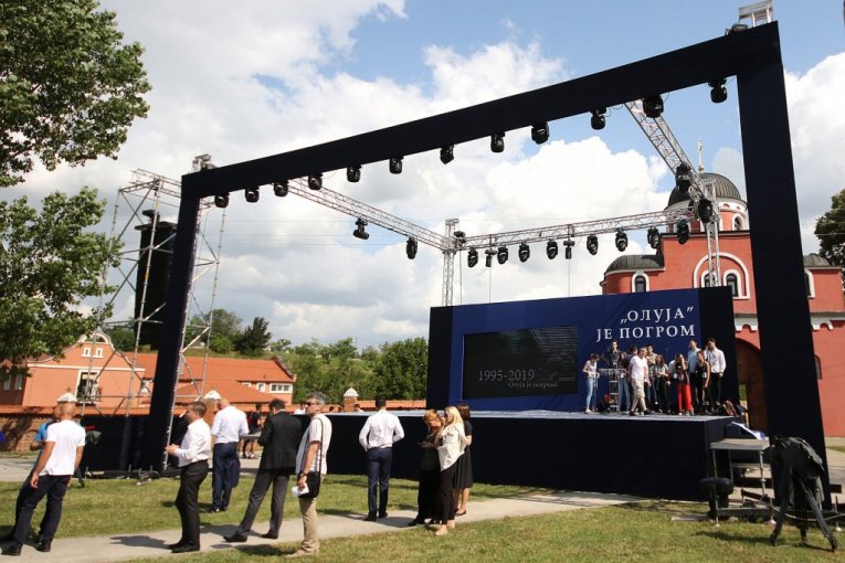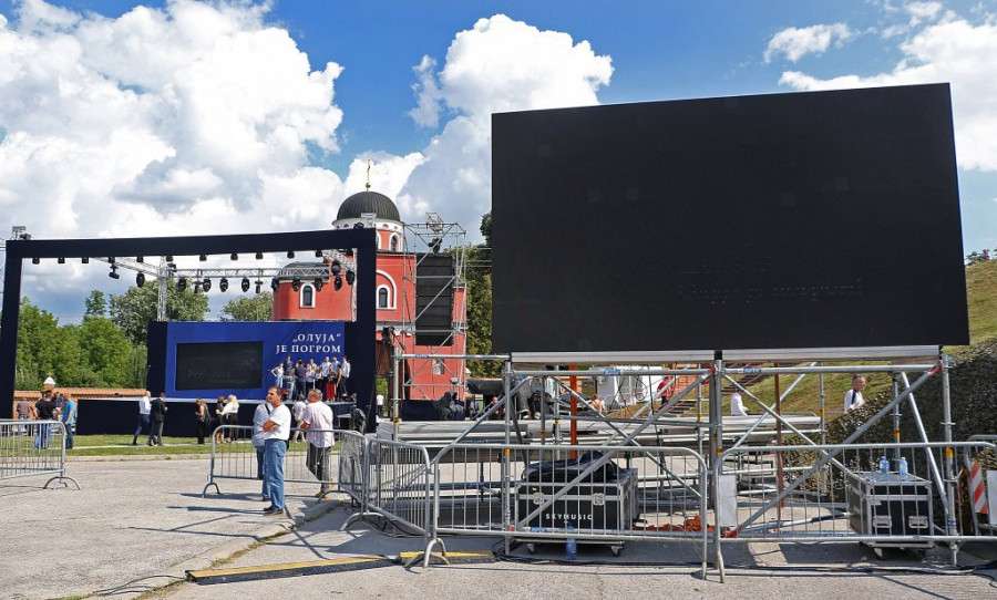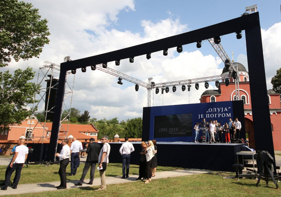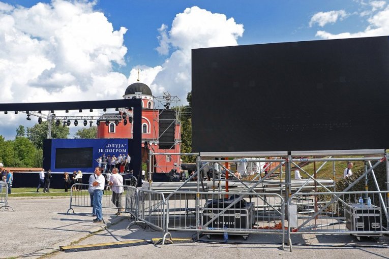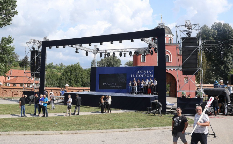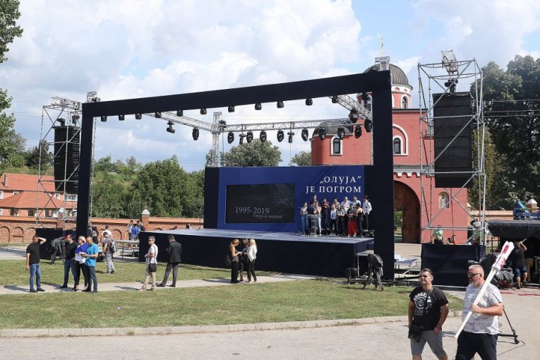 Centralna manifestacija povodom obeležavanja godišnjice hrvatske vojno-policijske akcije "Oluja" 1995. održava se kod manastira Krušedol na Fruškoj Gori, uz prisustvo predsednika i premijera Srbije Aleksandra Vučića i Ane Brnabić, a ovo su prizori pred početak programa.