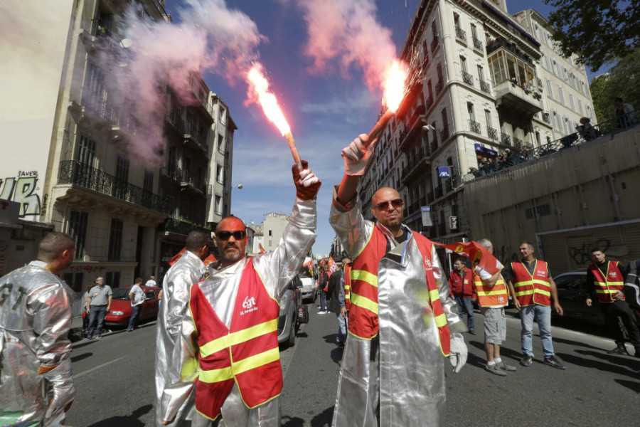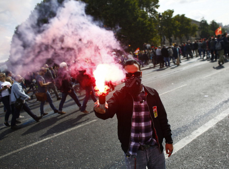 Protesti protiv reformi zakona o radu koje je planirao da unese Emanuel Makron u Francuskoj divljaju! Na ulicama je totalni haos, vidi se dim, a demonstranti bacaju kamenice i dimne bombe na policiju.