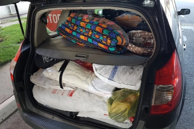 Prilikom detaljnog pregleda, već je jednostavnim otvaranjem zadnjih vrata bilo jasno da je automobil krcat robom.