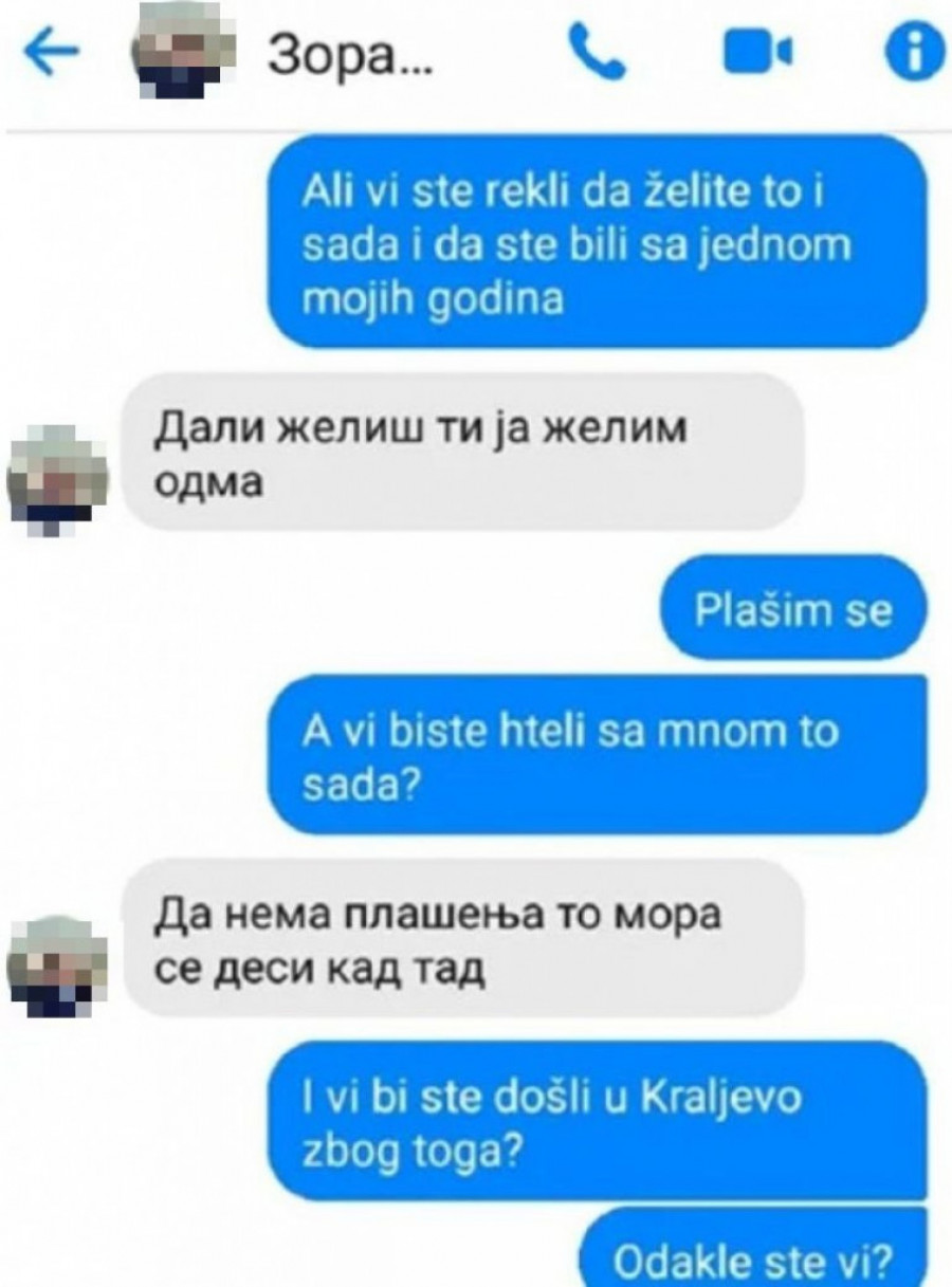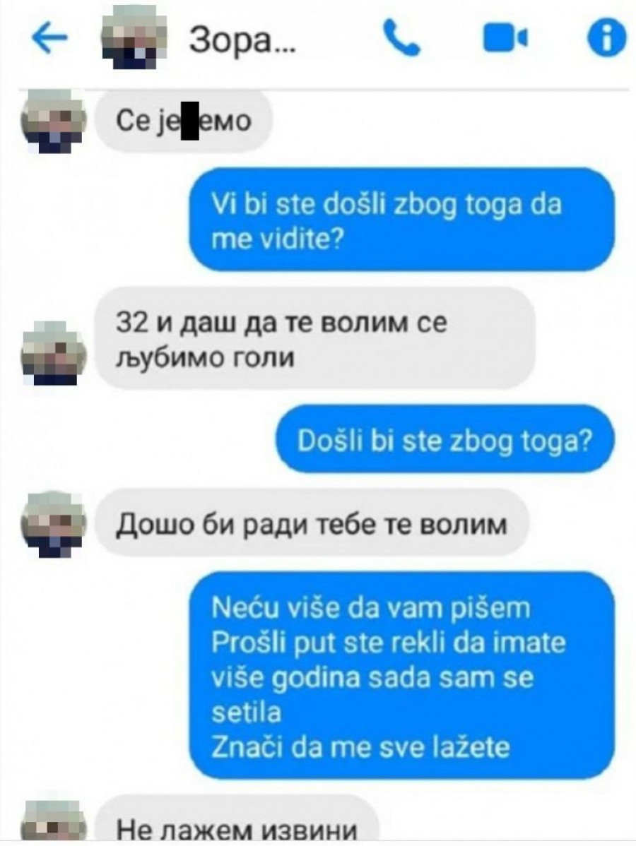 Najpre je rekao da je iz Požarevca, a potom da ima 45, da bi posle napisao kako je star 32 godine. Predator koji je očigledno prešao srednje godine, činio je sve da bi 12-godišnja devojčica pristala da se skine gola i pošalje mu fotografiju.