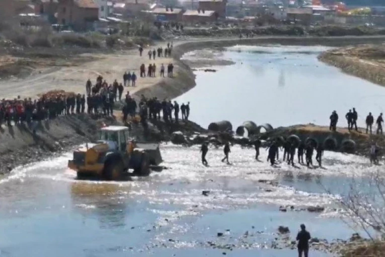 Grupa Albanaca bagerom je napala pripadnike KPS Sever srpske nacionalnosti koji su sprečavali pokušaj izgradnje nelegalnog nasipa na Ibru.