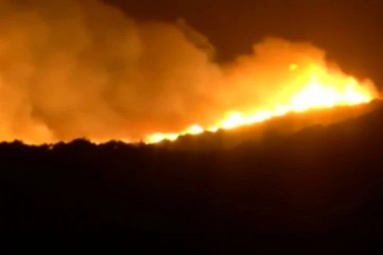 Požar bukti ispod kompleksa Milmari, kod nove crkve u vikend naselju, a izuzetno jak vetar, koji je danas prepodne dostizao brzinu i do 110 kilometara na sat, verovatno je doprineo širenju požara.