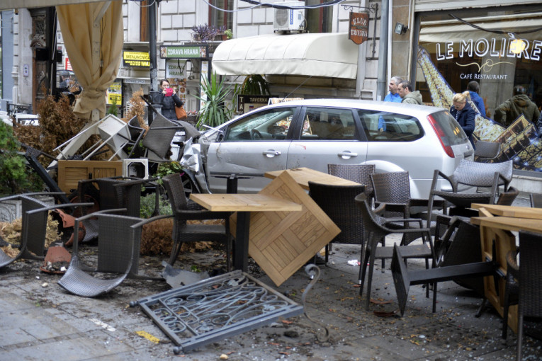 Delovi stolica, stolova, saksija, zemlje, krhkotine, tablica nalaze se svuda na licu mesta, a uviđaj je u toku.