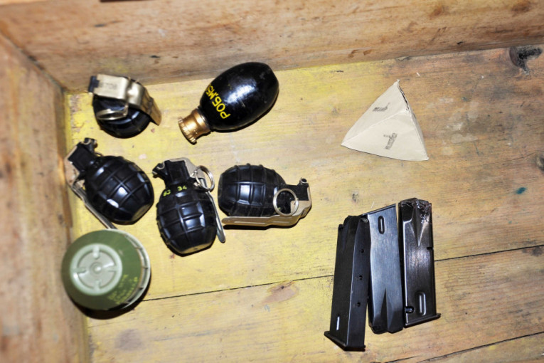 Policija je, prilikom pretresa garaže koju koristi osumnjičeni u Novom Beogradu, pronašla šest ručnih bombi, dve puške, kao i veću količinu municije.