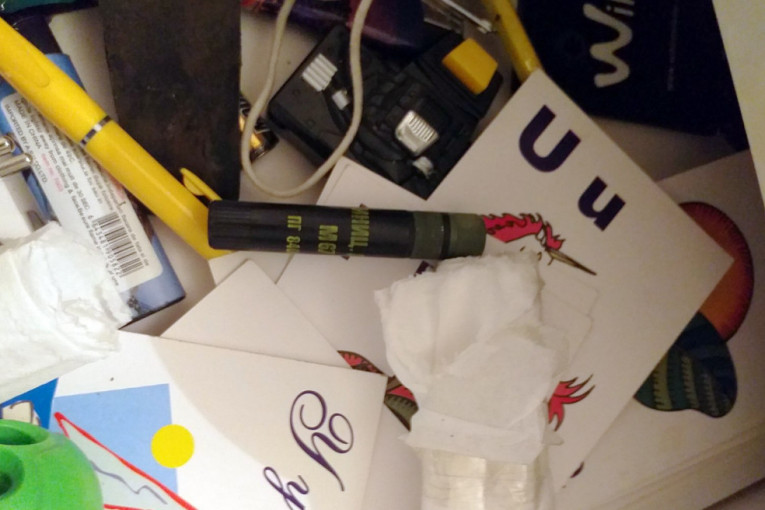 Foto: MUP SrbijePrilikom pregleda osumnjičenog policija je, u kesi koju je nosio, pronašla oko 700 grama eksploziva i specijalni diverzantski upaljač, dok je u stanu koji koristi pronašla još oko kilogram eksploziva i pet inicijalnih delova za specijalni diverzantski upaljač.