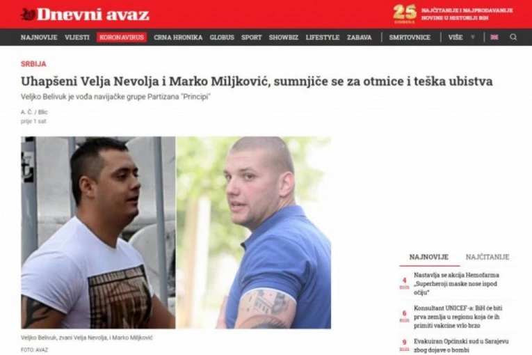 Veljko Belivuk, zvani Velja Nevolja i njegova desna ruka Marko Miljković uhapšeni su jutros oko 5 ujutro po nalogu Tužilaštva, a ceo region je preneo vesti o velikoj i organizovanoj akciji hapšenja srpske bezbednosene agencije jednih od najopasnijih ljudi podzemlja.
