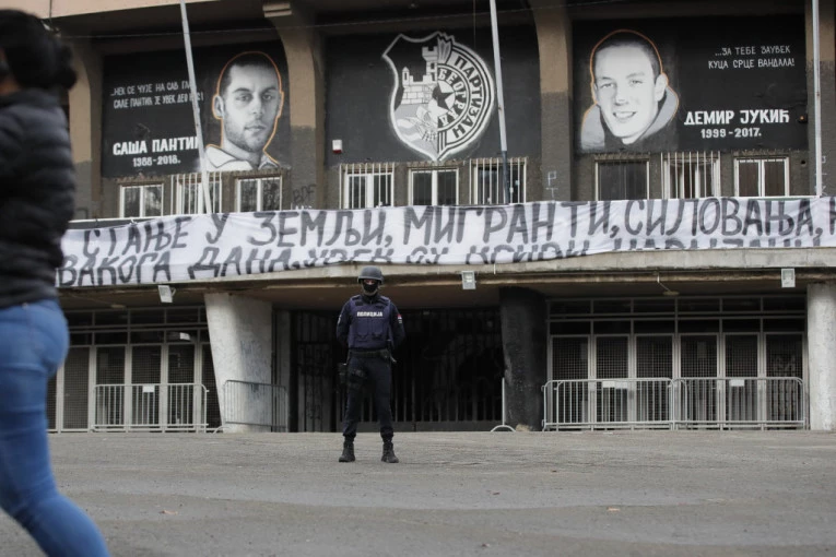 - Mediji ćute na stanje u zemlji, migranti, silovanje, krađe i problemi. Naslovna strana svakoga dana, uvek su krivi navijači Partizana - pisalo je na transparentu koji je uklonjen.