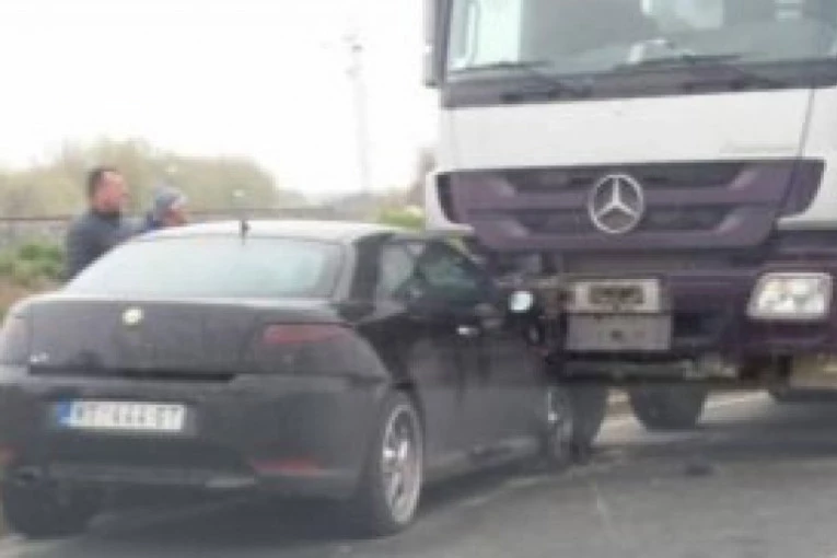 KARAMBOL KOD ŽEŽELJEVOG MOSTA: Auto se od siline udarca podvukao pod kamion