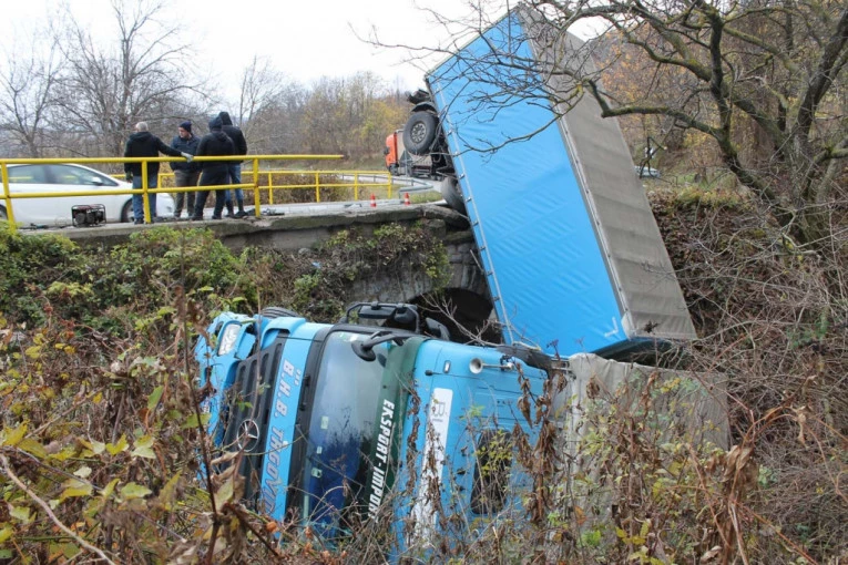 NESREĆA NA AUTO-PUTU: Kamion smrskan, probijena ograda od siline udara