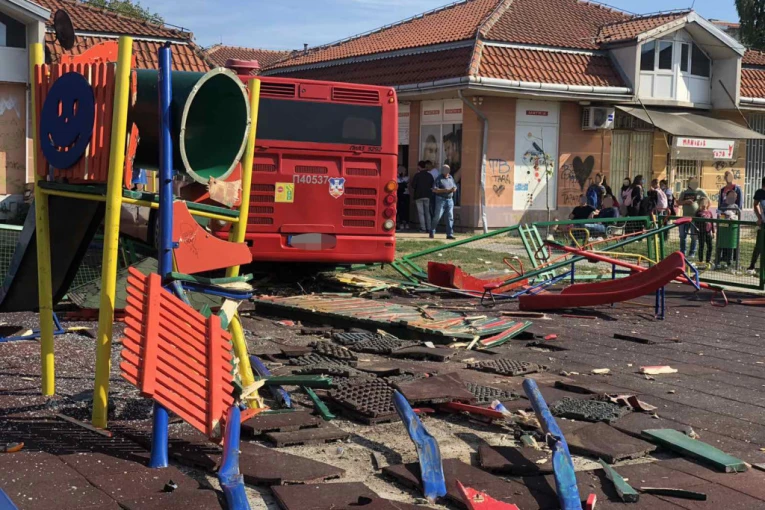 Podsećamo, autobus koji saobraća na liniji 45 uleteo je danas u dečji park u ulici Krajiška 71a u Zemunu.