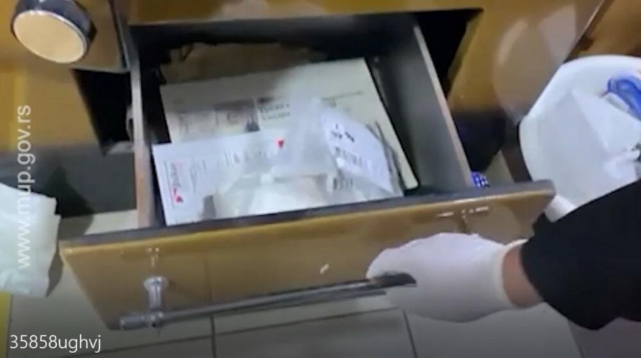 Pretresom stana i drugih prostorija osumnjičenog u Ovči, policija je pronašla kokain zapakovan u više kesa, ukupne težine oko 1.400 grama, više od 10 kilograma baze koja se koristi za uvećanje mase narkotika, kao i opremu za mešanje, merenje i pakovanje droge.