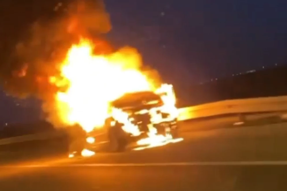 Na auto-putu pre odvajanja za Beograd iz pravca Ostružnice putnici koji su prolazili ovom deonicom naišli su na stravičan prizor - automobil koji je ceo bio u plamenu.