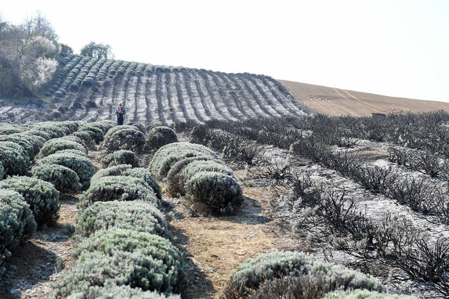 Požar su u ponedeljak gasili vatrogasci gotovo četiri sata, ali uprkos naporima nisu uspeli da spreče da prelepo polje lavande nestane.