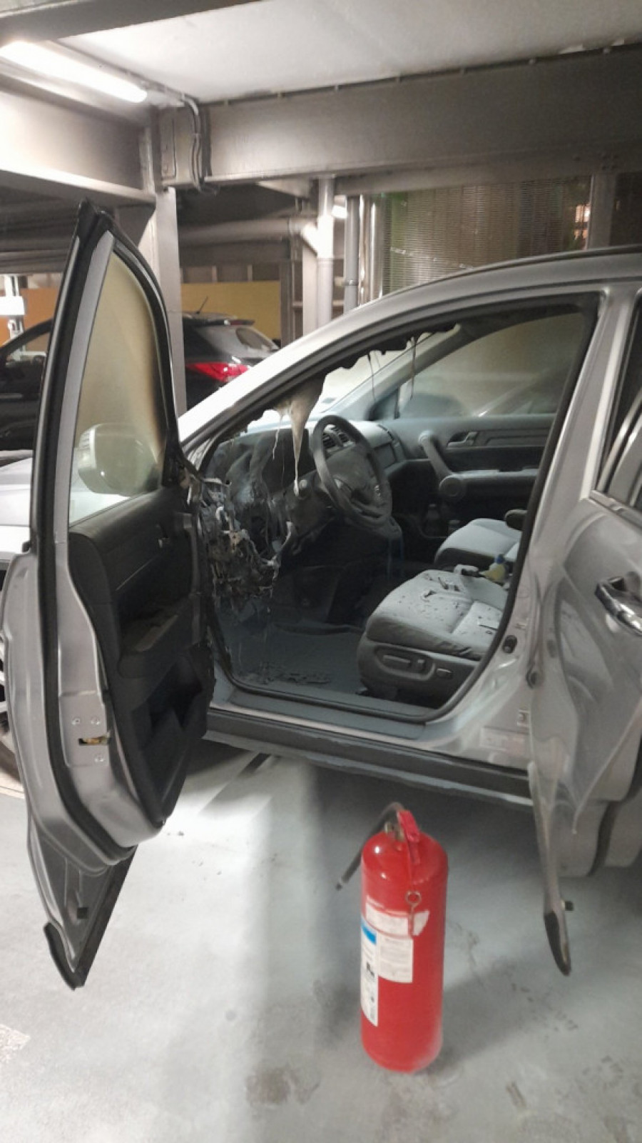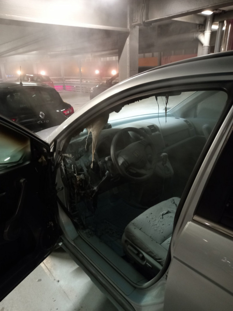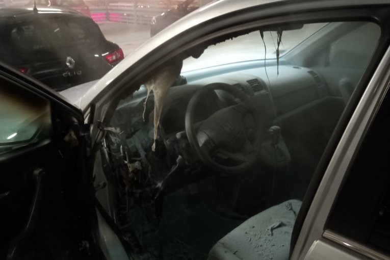 Na 7. nivou garaže jednom korisniku se zapalio automobil.