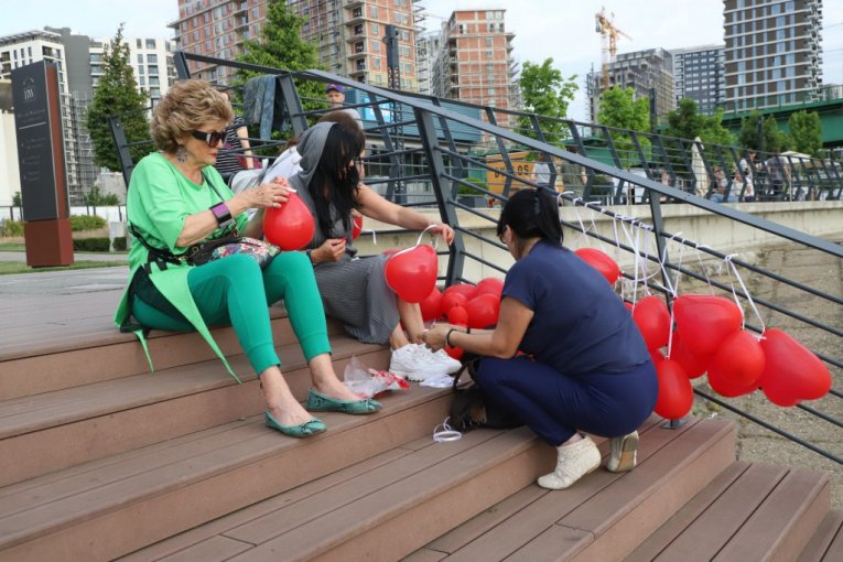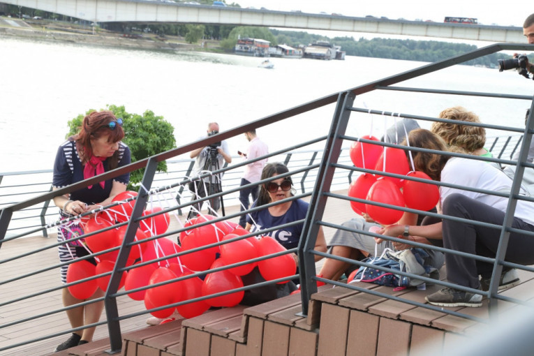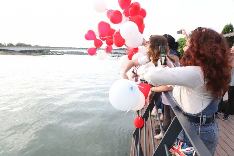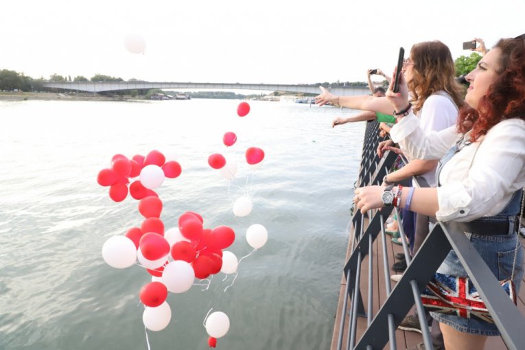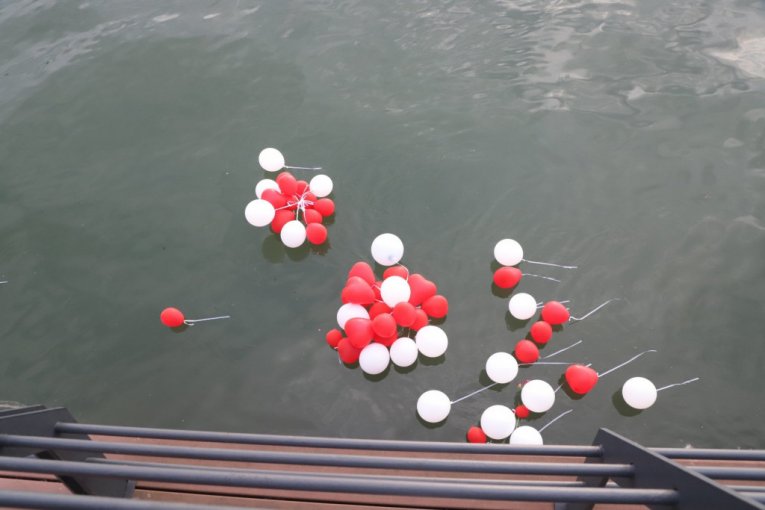 Nakon što su sveće upaljene, građani su veliki broj balona pustili niz reku.
