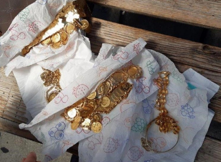 Njegova neuobičajena težina izazvala je sumnju da je u njemu nešto sakriveno, što se ubrzo ispostavilo kao tačno, jer je u nekoliko pelena pronađeno skoro pola kilograma zlatnih ogrlica i narukvica sa dukatima ''Franc Jozef'', kao i lančića i prstenja.