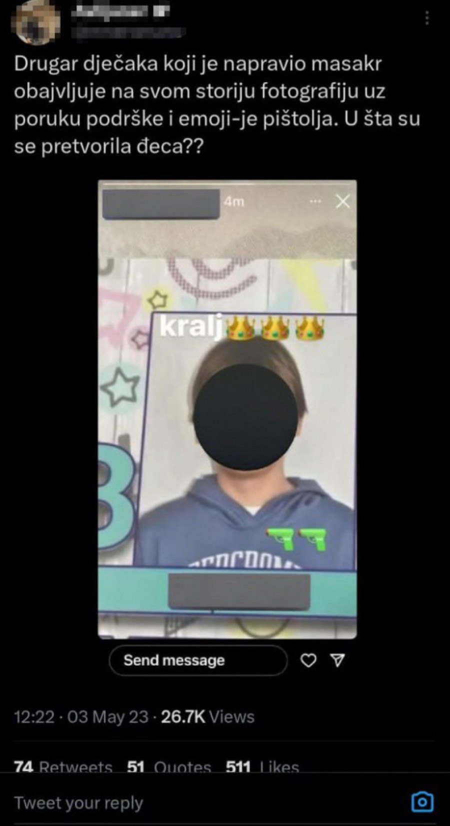 Na društvenim mrežama pojavili su se brojni statusi podrške dečaku ubici.