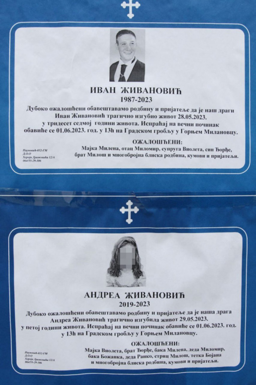 Neizmerna tuga nadvila se danas nad Gornjim Milanovcem. Nema ko nije zastao pored oglasne table grada na kojoj su jedna ispod druge umrlice mladog oca Ivana (36) i njegove ćerkice Andree Živanović (4). Foto: ST/Vladimir Lukić