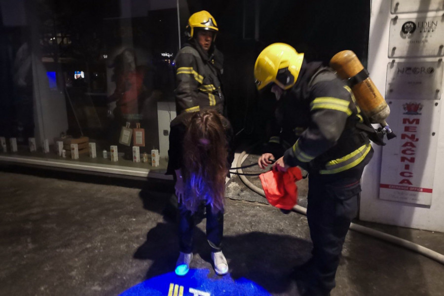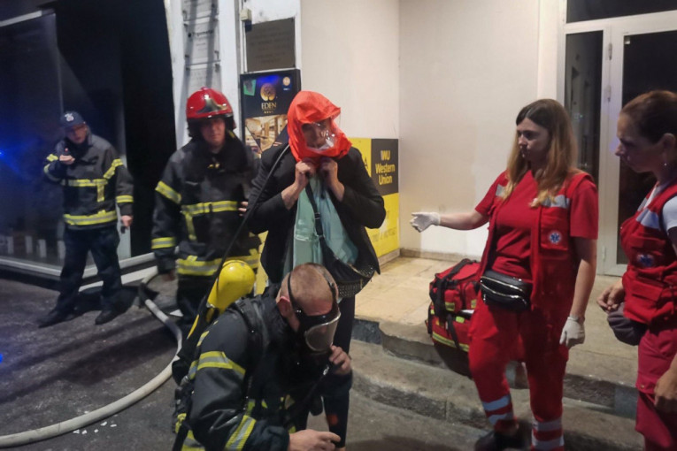 Vatrogasci-spasioci su evakuisali 14 osoba, dok su dve osobe u besvesnom stanju, predate Hitnoj pomoći i potom prevezene u Urgentni centar, dodaje se u saopštenju.