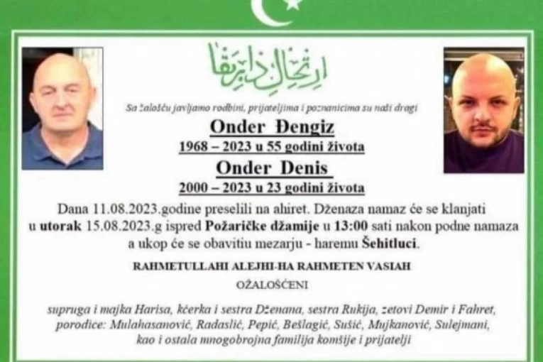 Đengiz i Denis Onder, žrtve Nermina Sulejmanovića, biće sahranjeni danas. Otac i sin su ubijeni u petak u krvničkom pohodu Sulejmanovića u Gradačcu.