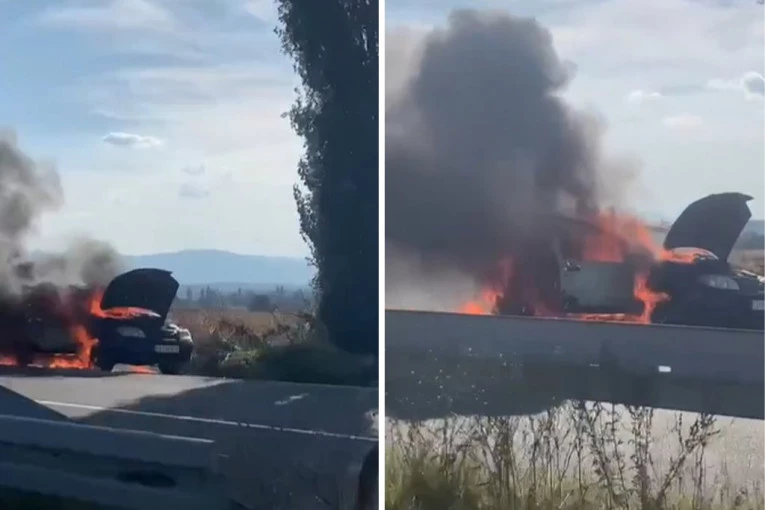 Saobraćaj je obustavljen, a automobil je u potpunosti izgoreo.