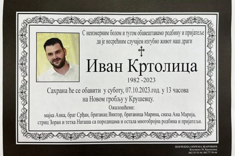Stotine ljudi okupile su se da iskažu poslednju počast Ivanu Krtolici (41), građaninu Kruševca koji je preminuo nakon tragičnog incidenta u pabu u sredu uveče. Ivanov život je nasilno okončan kada ga je napao Bojan M. (34).