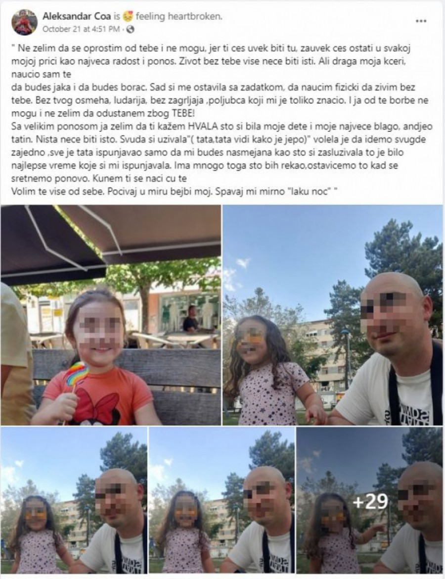 Otac deteta Aleksandar Stojkov oprostio se od ćerkice srceparajućim rečima.