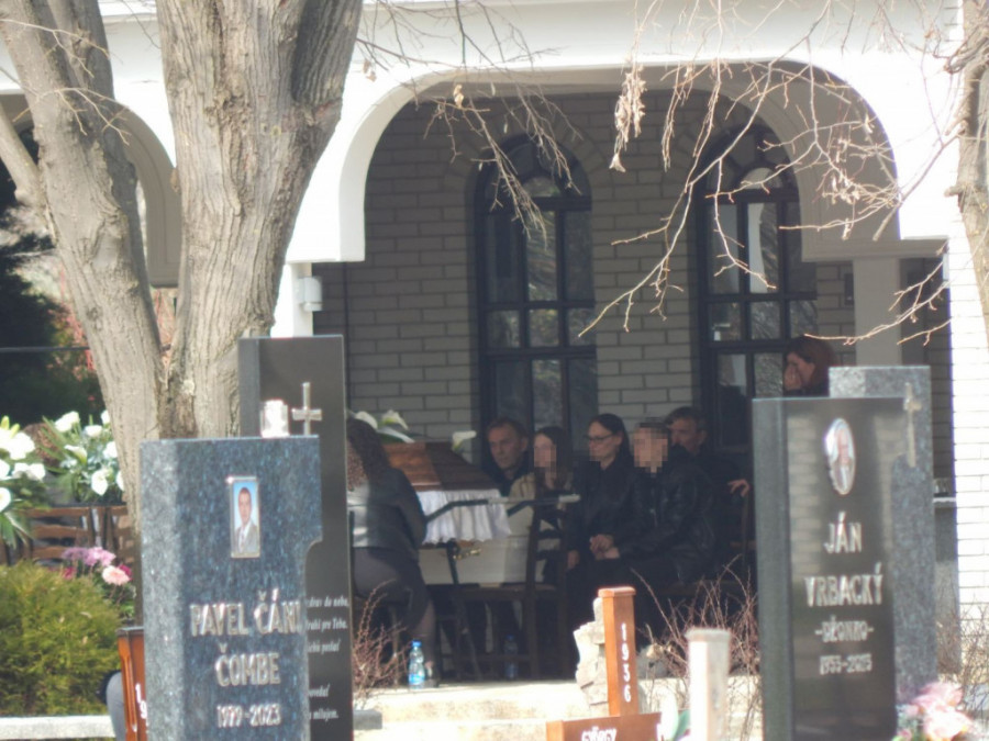 Uz majku sedi mlađi momak i jedna devojčica i još jedna žena u crnini, a po drugim klupama desetak starijih žena plače tiho. Naspram sanduka sedi jedan par muškarac i žena.