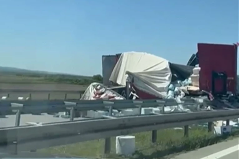 Nakon što je saobraćaj bio obustavljen zbog teške saobraćajne nesreće, teretnjaci koji su učestvovali u nezgodi su sklonjeni sa puta, omogućavajući ponovno usporeno odvijanje saobraćaja prema Beogradu.
