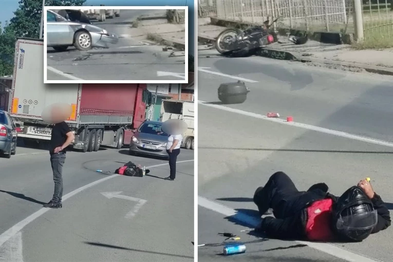 - Do nezgode je došlo kada se vozilo ukljucivalo sa sporednog puta, a motorista je udario u njega i od siline udara je pao na zemlju. Na svu sreću imao je na sebi kacigu, što mu je spasilo život - kaže za RINU jedan od očevidaca.