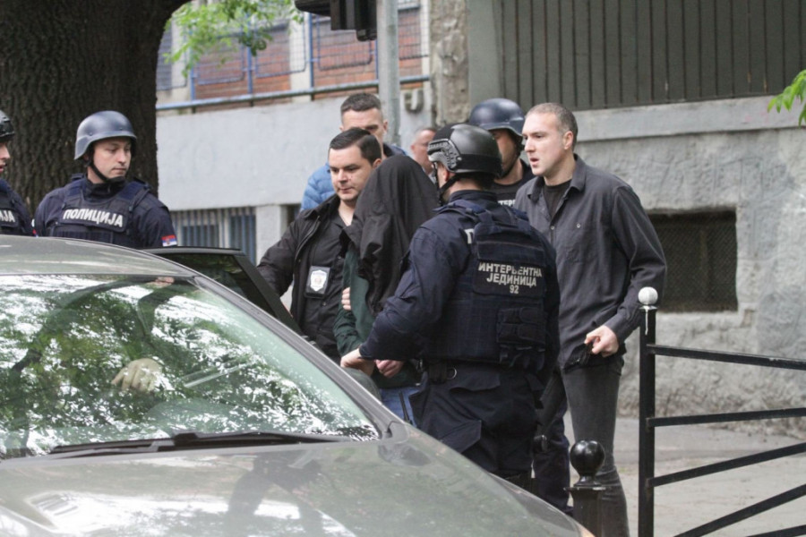 Prilikom hapšenja je bio prekriven jaknom preko glave i nije pružao otpor policajcima i imao je lisice na rukama.