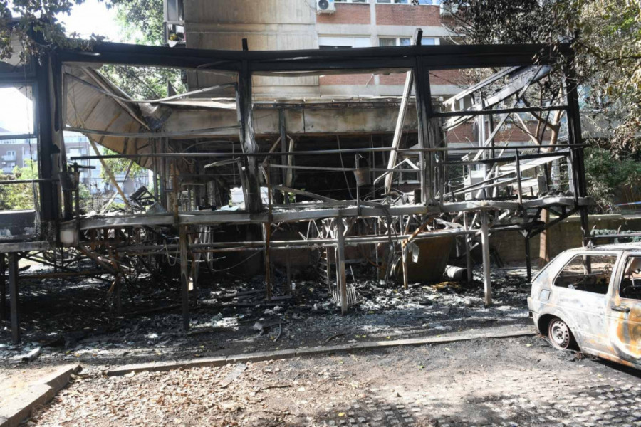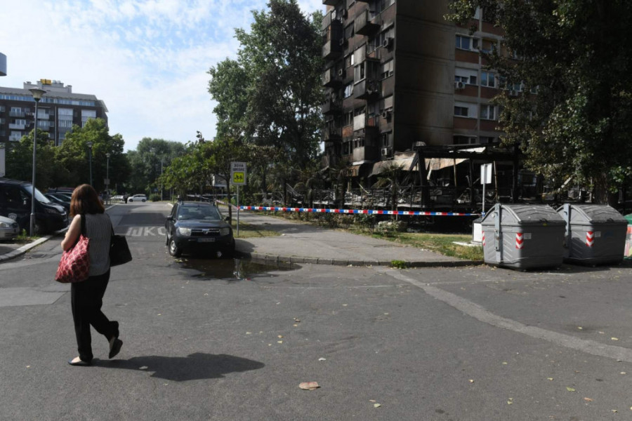 Dan nakon požara koji je zahvatio kafić i stambenu zgradu u ulici Maršala Tolbuhina na Noovm Beogradu izgleda pusto.