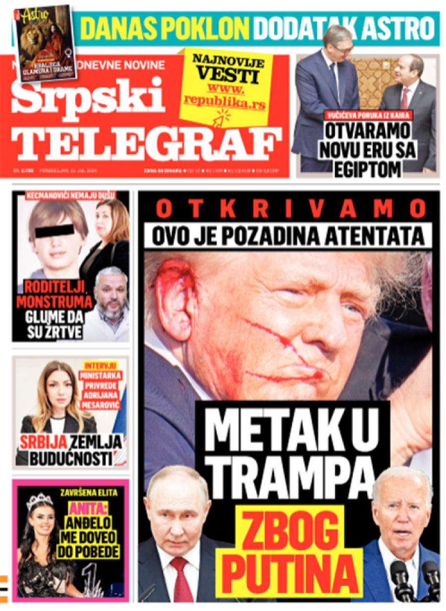 Srpski telegraf u izdanju za ponedeljak 15. jul vam donosi pregršt važnih i interesantnih priča!
