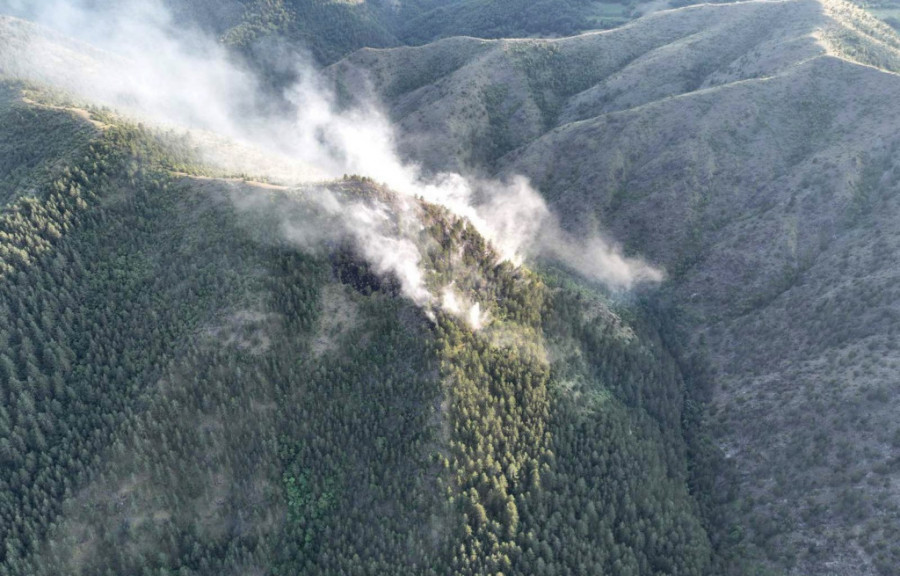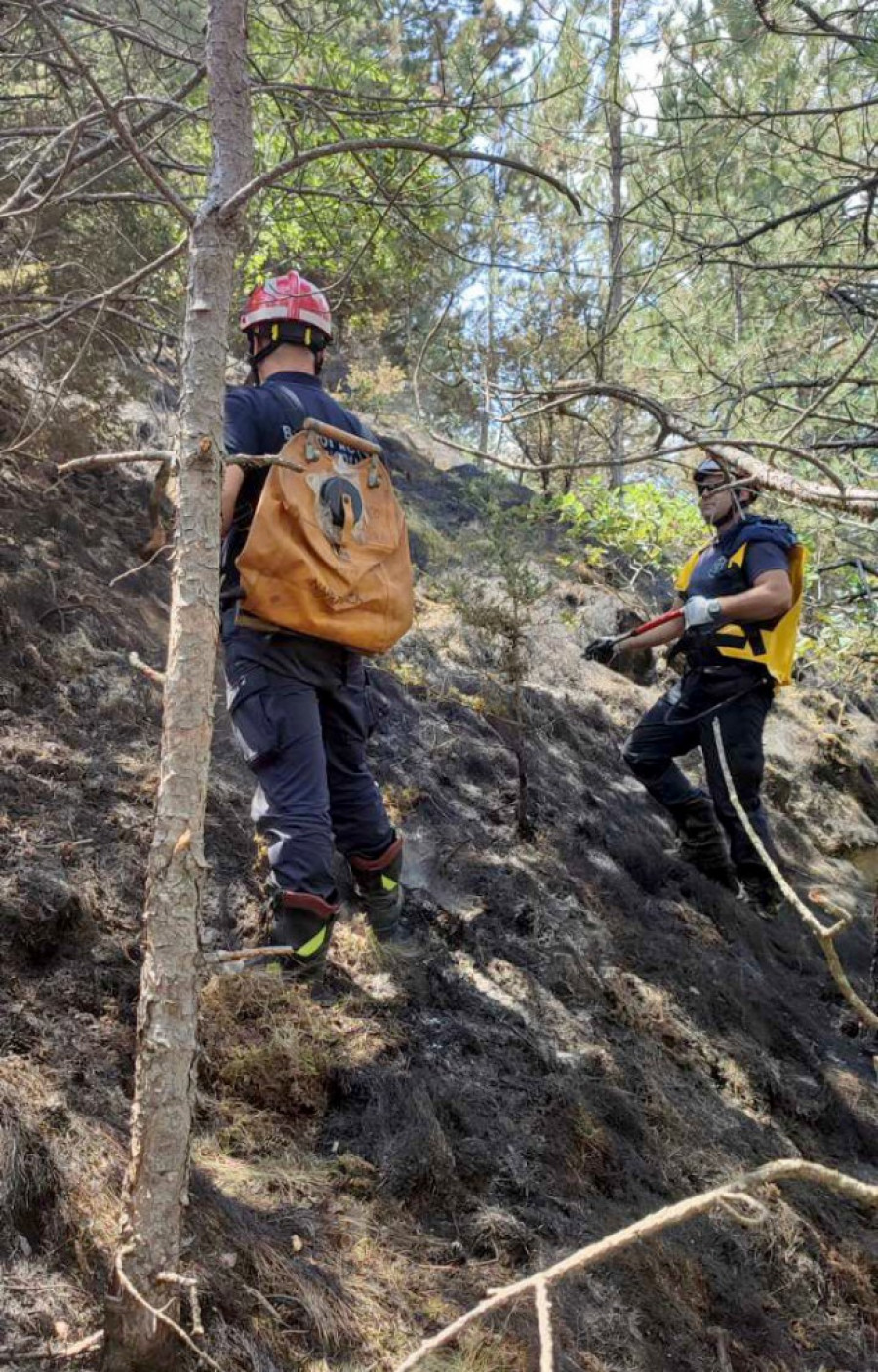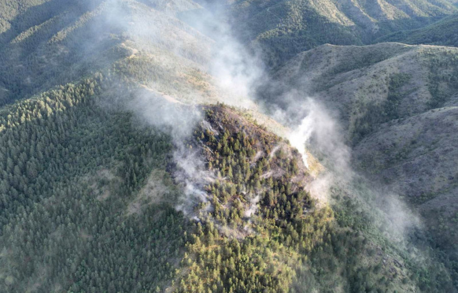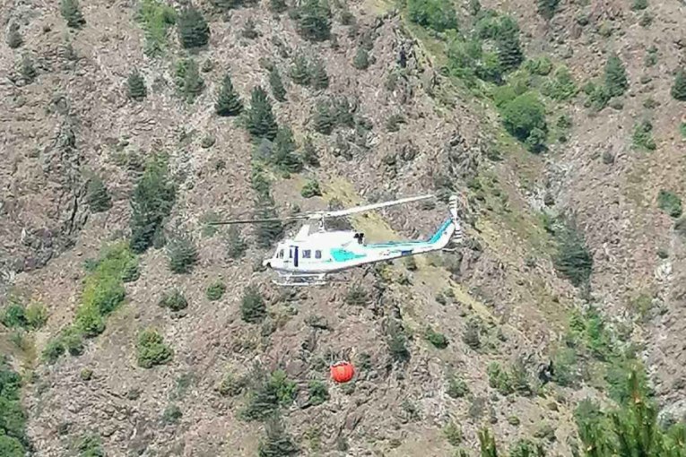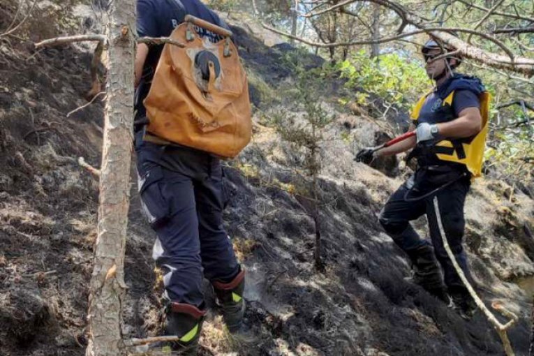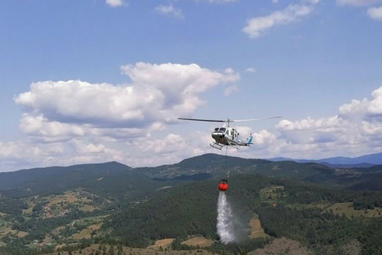 Vatrogasci-spasioci su od juče angažovani na gašenju požara borove šume, a zbog nepristupačnosti terena i nemogućnosti prilaska celoj opožarenoj površini, angažovana je i Helikopterska jedinica sa pet članova posade.