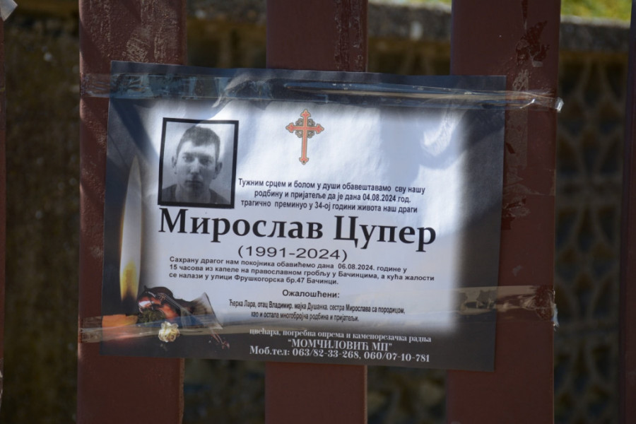 Danas u Bačincima je sahranjen Miroslav Cuper koji se prekjuče utopio u Sotkom jezeru.