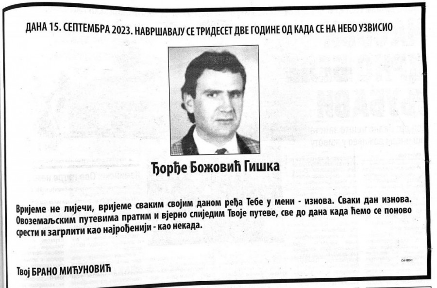 Đorđe Božović Giška ubijen je na ratištu u Gospiću