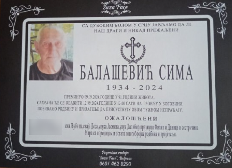 Podsećamo, početkom septembra Sima Balašević (90) brutalno je ubijen u svojoj porodičnoj kući u selu Bogovina kod Boljevca. Zbog ovog strašnog zločina uhapšen je D. B. (46) iz okoline ovog mesta.